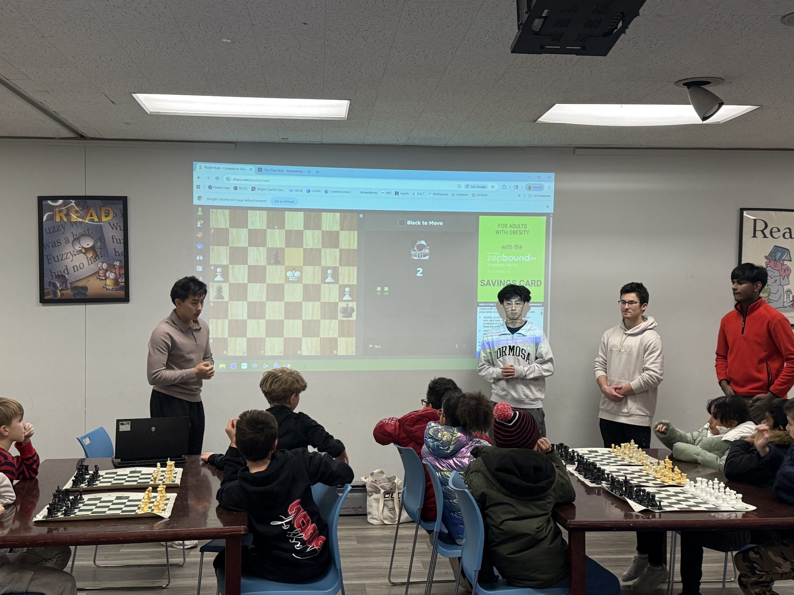 Partnering with Fair Lawn Public Library, The Chess Bros is excited to return to in-person lessons. Unlike online sessions, meeting face-to-face brings a different level of connection and energy. Seeing the enthusiasm on each student’s face reminds us why we do this: nurturing curiosity and passion that drive our mission forward as a new year’s goal. Every session is a full house, filled with focus, excitement, and a shared love for learning through chess. We’ll be continuing in February. Join us!